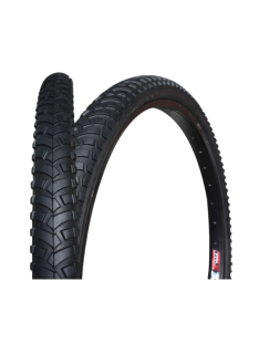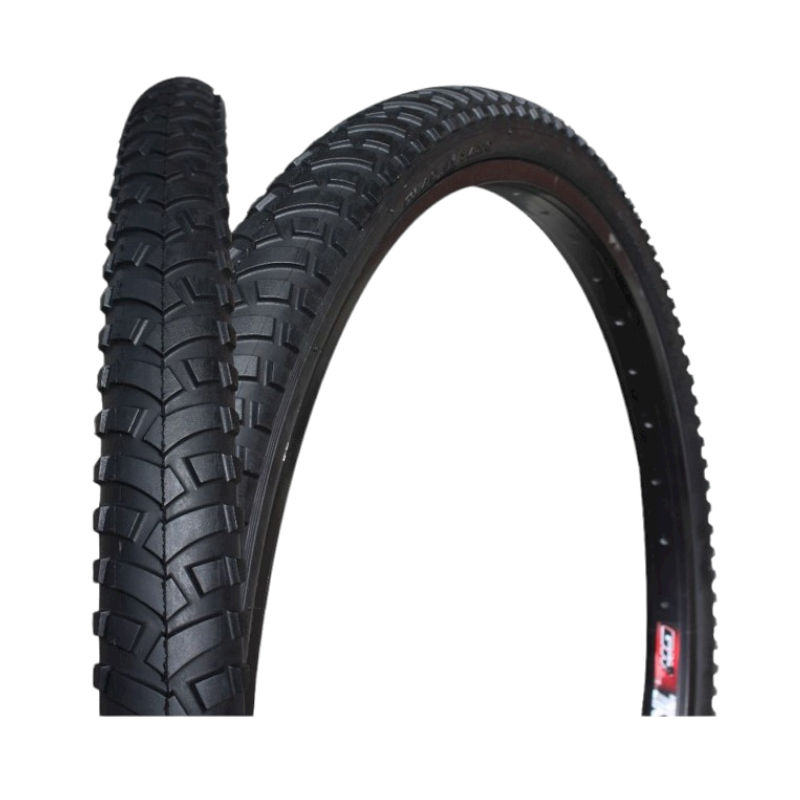 Llanta rígida. De tacos gruesos especial para terrenos agrestes y temperaturas fuertes. Los grandes y numerosos tacos en forma de flecha te brindan una rodada mas segura cómoda.